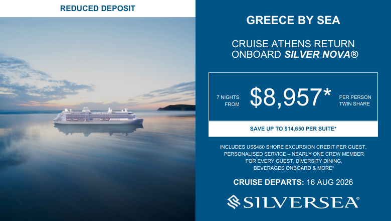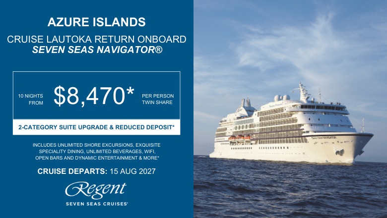 *Terms & Conditions: Valid for sales to 28 February 2026 (unless sold out prior) except Mediterranean Discovery: sales to 25 February 2026. All pricing is dynamic, meaning it can fluctuate based on seasonality, days of the week, availability, and demand. Prices correct as at 19 February 2026 when there was reasonable availability on the advertised price. Price is per person, in NZD, cruise only, applies to select sailings, based on double occupancy in specific categories. Deposits may not be refundable and cabin selection may not available and will be assigned closer to sailing date. Some staterooms may have obstructed views. New bookings only. Reflects all promotional savings. Savings amount varies by category and is per stateroom. All onboard credit amounts are per stateroom based on twin share and is not transferable, non-refundable and not redeemable for cash. For payment by cash, cheque or eftpos only. Credit card sales not permitted unless Travel Agent acts as a merchant. Events beyond our control such as currency fluctuations & changes to the price of aviation fuel may result in prices variations. FINANCE CONDITIONS: Lending criteria, fees, terms & conditions apply. |