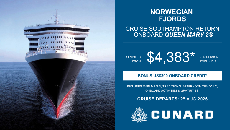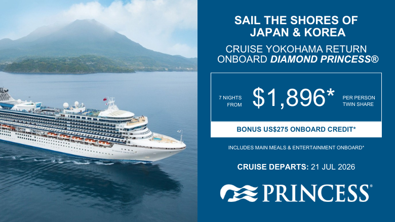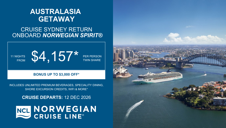 *Terms and Conditions: Valid for new bookings only. Prices correct at time of email send and are in New Zealand dollars inclusive of any savings, subject to change and availability. Selected cruises only. Flights are additional, prices do not include flights and are for cruise only. Travel periods apply. Sales periods apply. Amendment, cancellation and credit card fees apply. Further terms and conditions apply. For full Terms and Conditions contact your local Travel Broker